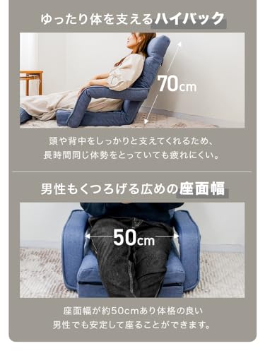 • 背面の高さがハイバック(70㎝)&動く肘掛け有で楽に座れる