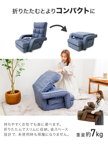 先ほどの床と水平に広げた画像を見て頂ければ分かりやすいが、背面の角度に合わせて肘掛けが動くのも便利だ。
